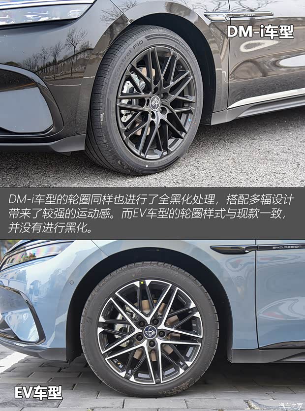 能够看到,全新配色车型的车头饰板、窗框线、后视镜、同时DM-i车型对轮圈也进行了黑化,而EV车型的轮圈则没有调整。车身尺寸方面取现款连结分歧,长宽高别离为4995*1910*1495mm,轴距为2920mm。
